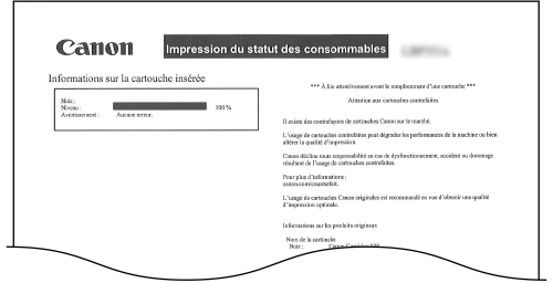 Des informations comme la quantité restante de toner, des messages d'avertissement et des informations sur les lieux où vous pouvez acheter de nouvelles cartouches de toner peuvent être consultées sous forme liste.