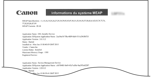 Vous pouvez consulter sous forme de liste les informations sur les applications MEAP installées sur l'appareil et les applications du système MEAP si la fonction MEAP est activée.