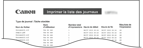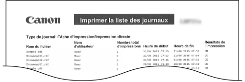 Vous pouvez imprimer sous forme de liste un journal des documents imprimés depuis l'ordinateur.