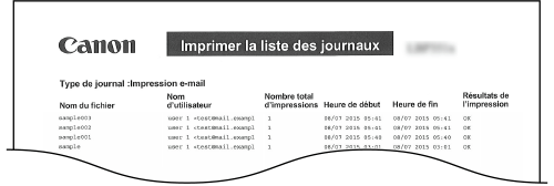 Vous pouvez imprimer sous forme de liste un journal des impressions des e-mails réceptionnés.