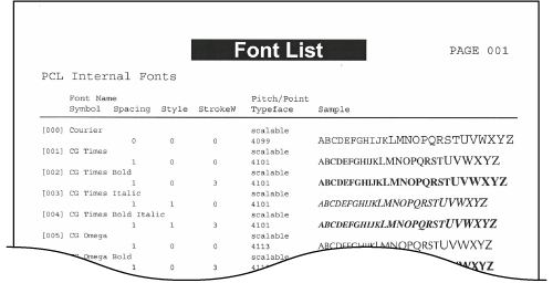 Vous pouvez consulter sous forme de liste les polices de caractères disponibles en mode PS.