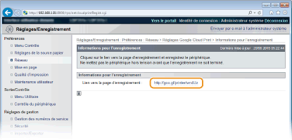 Cliquez sur le lien de l'URL qui s'affiche dans [Lien vers la page d'enregistrement].