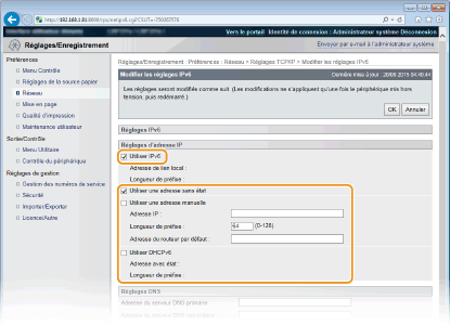 Cochez la case [Utiliser IPv6 ] et configurez les réglages appropriés.