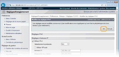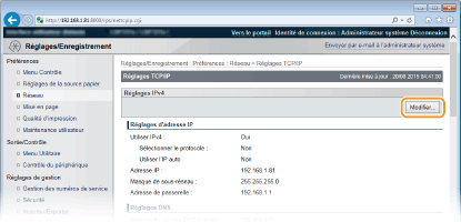 Configuration des réglages DNS IPv41 | Cliquez sur [Modifier] dans [Réglages IPv4]. ![]() |