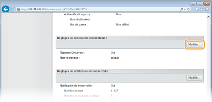 1 | Cliquez sur [Modifier] dans [Réglages de découverte multidiffusion]. ![]() |