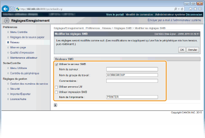 Cochez cette case pour utiliser l'impression SMB avec l'appareil.