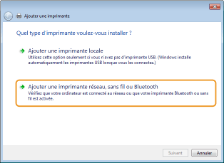 Si vous utilisez Windows 7/Server 2008, cliquez sur [Ajouter une imprimante réseau, sans fil ou Bluetooth].