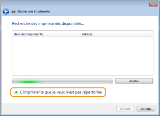 Cliquez sur [L’imprimante que je veux n’est pas répertoriée].