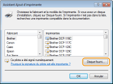 Pour activer le protocole d'impression IPP ou IPPS, installez le pilote d'imprimante en suivant la procédure ci-dessous appropriée pour le système d'exploitation de votre ordinateur. Le pilote d'imprimante se trouve sur le User Software CD-ROM/DVD-ROM fourni avec l'appareil. Insérez le User Software CD-ROM/DVD-ROM dans le lecteur de l'ordinateur avant de commencer la procédure.