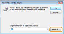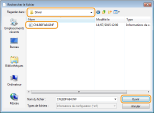 Spécifiez le dossier contenant les pilotes d'imprimante, sélectionnez le fichier INF puis cliquez sur [Ouvert].
