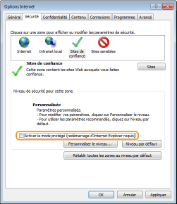 Si vous avez décoché la case [Activer le mode protégé (redémarrage d'Internet Explorer requis)] à l'étape 7, cochez-la.