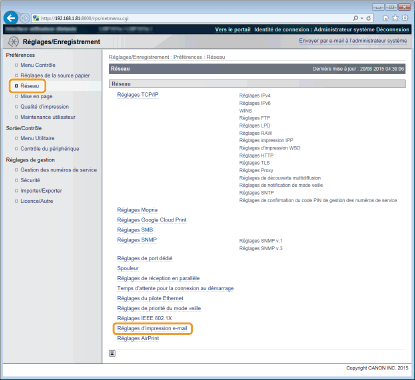 Cochez cette case pour activer l'impression d'e-mail en utilisant le protocole SMTP. Vous pouvez également spécifier ce réglage à l'aide de <SMTP RX> dans le menu des réglages du panneau de commande (