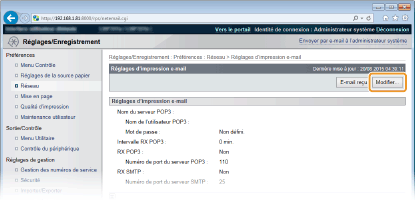 Cette section décrit comment spécifier les réglages pour la réception et l'impression des e-mails sur l'appareil. Utilisez un ordinateur pour faire les réglages concernant la réception des e-mails et le panneau de commande de l'appareil pour ceux concernant leur impression.