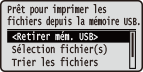 1 | Sélectionnez <Retirer mém. USB>, et appuyez sur . |