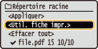 Si vous sélectionnez <Trier les fichiers> dans l'écran à l'étape 1, vous pouvez changer l'ordre de présentation des fichiers lorsque vous sélectionnez le fichier à imprimer. |