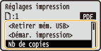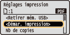 2 | Sélectionnez <Démar. impression>, et appuyez sur . |