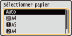 Ce réglage n'est pas disponible si <Auto> est réglé sur <Sélectionner papier>.