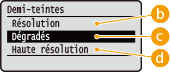 Vous pouvez sélectionner le mode d'impression pour reproduire les demi-teintes (plage intermédiaire entre les zones claires et les zones foncées d'une image).