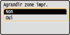 Si vous sélectionnez <Oui>, il est possible de perdre une partie de l'image près des bords du papier ou qu'elle soit partiellement imprimée sur la page suivante selon l'image originale reproduite.