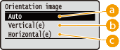 Si le réglage spécifié pour <Vertical(e)> ou <Horizontal(e)> n'est pas adapté à l'orientation de l'image, l'image imprimée est réduite.