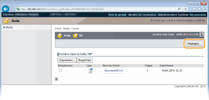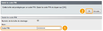 Vous pouvez attribuer un nom à une boîte et définir un code PIN pour l'ouvrir. Choisissez un nom facilement identifiable dans la liste des boîtes pour simplifier la sélection de l'emplacement où stocker vos documents à l'aide du pilote d'imprimante. L'utilisation d'un code PIN permet de limiter l'accès aux documents stockés à certains utilisateurs et de renforcer ainsi la sécurité.