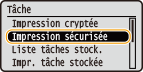 pour sélectionner <Impression sécurisée> et appuyez sur