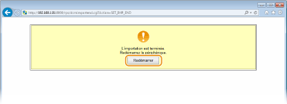 Les données relatives aux réglages sont alors importées dans l'appareil.