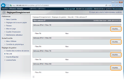 Sélectionnez cette option pour limiter l'envoi de données à un ordinateur à partir de l'appareil en spécifiant des adresses IPv4.