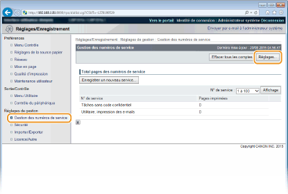 Cliquez sur [Gestion des numéros de service] et enregistrez ou modifiez les numéros de service.