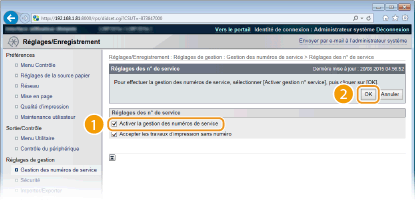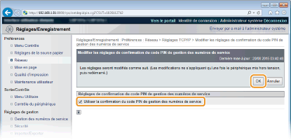 Cochez la case [Utiliser la confirmation du code PIN de gestion des numéros de service]