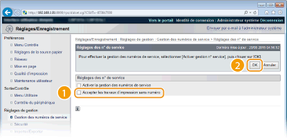 Décochez la case [Accepter les travaux d'impression sans numéro], puis cliquez sur [OK].
