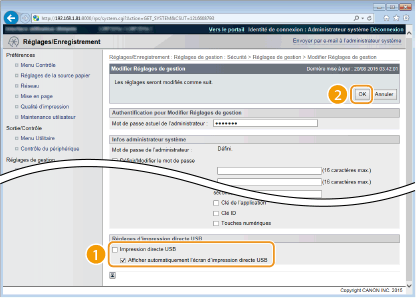 Décochez la case [Impression directe USB], puis cliquez sur [OK].