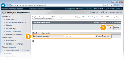 2 | Saisissez la clé prépartagée en caractères alphanumériques et cliquez sur [OK]. |