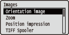 Si les données TIFF comprennent les informations spécifiant la position d'impression, l'image est imprimée conformément à ces informations, sinon, elle est imprimée au centre de la feuille. Les données JPEG sont toujours imprimées au centre de la feuille.