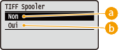 Sélectionnez cette option pour stocker des données TIFF dans la carte SD avant de les traiter pour l'impression. Réglez cette option sur <Oui> si une erreur se produit pendant l'impression.