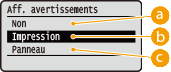 Sélectionnez cette option pour limiter le nombre de pages du message d'e-mail à imprimer lorsque <Impr texte e-mail> est réglé sur <Oui>. Si vous sélectionnez <Oui>, le nombre de pages du message d'e-mail à imprimer est limité à 5.