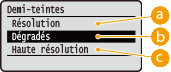 Vous pouvez sélectionner le mode d'impression pour reproduire les demi-teintes (plage intermédiaire entre les zones claires et les zones foncées d'une image).