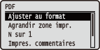 Sélectionnez cette option pour imprimer des commentaires. Si vous sélectionnez <Auto>, les commentaires des fichiers PDF sont imprimés.
