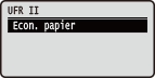 Cette section décrit les réglages disponibles lors de l'utilisation d'UFR II avec les commandes de contrôle. Les réglages par défaut sont signalés par une croix ().