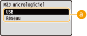 Il n'est pas possible d'utiliser le port USB du côté droit de l'appareil pour effectuer ces opérations. Si l'écran <Prêt pour imprimer les fichiers depuis la mémoire USB.> s'affiche au raccordement d'un périphérique mémoire USB, appuyez sur ( ).Pour en savoir davantage sur l'importation et l'exportation des données de réglage, consultez la section Enregistrement/Chargement des données mémorisées. |