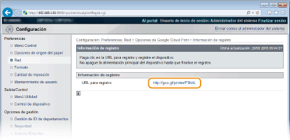 Haga clic en el vínculo de la URL que aparece en [URL para registro].
