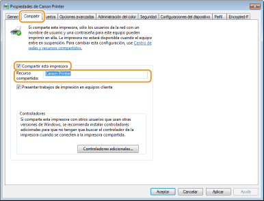 5 | Haga clic en [Aceptar]. Comienza la instalación de los controladores adicionales. Espere a que vuelva a aparecer la pestaña [Compartir]. ![]() Cuando aparece [Control de cuentas de usuario] Haga clic en [Sí]. |