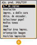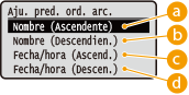 Puede definir el orden en que se muestran los archivos para imprimir desde un dispositivo de memoria USB para su selección.