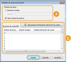 Especifique las opciones para almacenar documentos y haga clic en [Aceptar].
