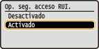 ![]() Si se inicializan las opciones de la IU remotaEl PIN de acceso a IU remota también se inicializará. Tras una inicialización, vuelva a establecer el PIN. Inicialización del menú |