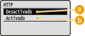 HTTP se utiliza en las comunicaciones a través de la red, como cuando se accede al equipo a través de la IU Remota. Si utiliza una conexión USB o no utiliza HTTP, puede deshabilitar HTTP para bloquear las intrusiones de terceros malintencionados a través del puerto HTTP sin utilizar.
