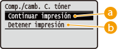 <Continuar impresión> o <Detener impresión>