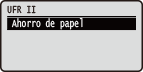 ![]() | En esta sección se describen las opciones disponibles durante el uso de UFR II con los comandos de control. Las opciones predeterminadas aparecen marcadas con una cruz ( ). |