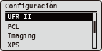 Puede utilizar el menú Configuración para especificar opciones específicas de cada modo de impresión. Se describen las opciones específicas de cada modo de impresión.