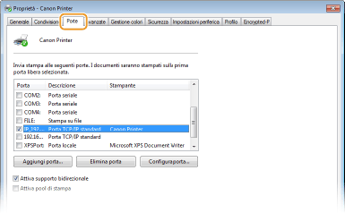Nella scheda [Porte], verificare che la porta sia selezionata correttamente.